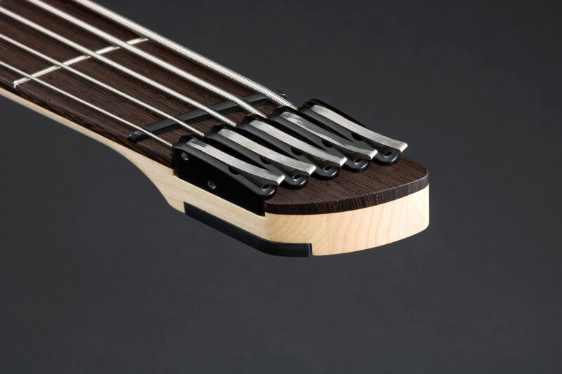 At the other end of the neck, our tool-free string locks make string changes effortless. Once you’ve got the correct string tension dialled in, you can simply cut and insert the end of the string, close the lever and everything is locked in place. The tuning, incidentally, is super-solid. Tuned once, put back in the gig bag, no need to tune again. A patent applied for Extendable Wing System allows you to safely mount the instrument on any regular guitar stand or hanger.